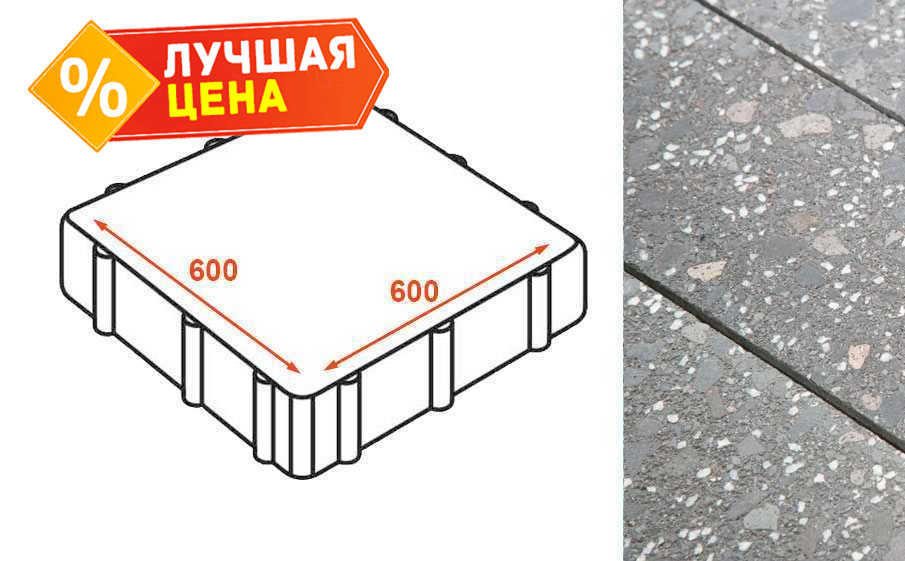 Плита тротуарная Готика Granite FINO, Ильменит 600x600x80 мм